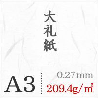 招待状、挨拶状、封筒、紙袋、箸包み、お品書きに大礼紙 209.4g/平米 A3サイズ:100枚価格: 12,600円レビュー評価: 0.0 レビュー数:0 大礼紙(たいれい紙)繊維の模様が上品な和紙風模様紙(片面)です。冠婚葬祭などフォーマルな用途にお使いいただけます。招待状、挨拶状、封筒、紙袋、箸包み、お品書きに。ご希望のサイズに断裁可能。【厚さ】209.4g/平米(0.27mm)【サイズ】A3(297×420)断裁加工賃(カット判の加工) 販売価格 1,050円(税込) 大礼紙 209.4g/平米 A4サイズ:100枚 販売価格 5,250円(税込) 大礼紙 209.4g/平米 A4サイズ:500枚 販売価格 16,800円(税込) 大礼紙 209.4g/平米 A4サイズ:1000枚 販売価格 21,000円(税込) 大礼紙 209.4g/平 |